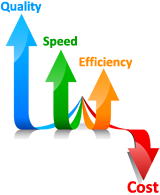 Die Optimierung der Kosten ist eine Aufgabe, die es täglich zu lösen gilt. Die Ziele der Kostensenkungen sind aber auch gleichzeitig Qualitätsverbesserung, zeitliche Optimierung der Prozesse und eine Erhöhung der Projekteffizienz.